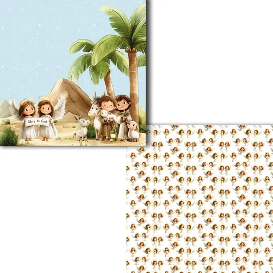 Colección de papeles para scrapbooking "Nativity Scene", en formato A-4. Producto digital, PDF en descarga inmediata.